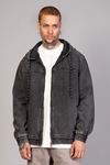 Erkek Kapüşonlu Oversize Marsıan Mavi Kar Yıkama Kot Ceket